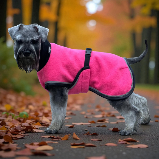 Fleecetakki on hyvä lisä lämmittämään juuri trimmattua tai ohutkarvaista koiraa. Valikoimassa on yksivärisiä ja kuviollisia fleecetakkeja.