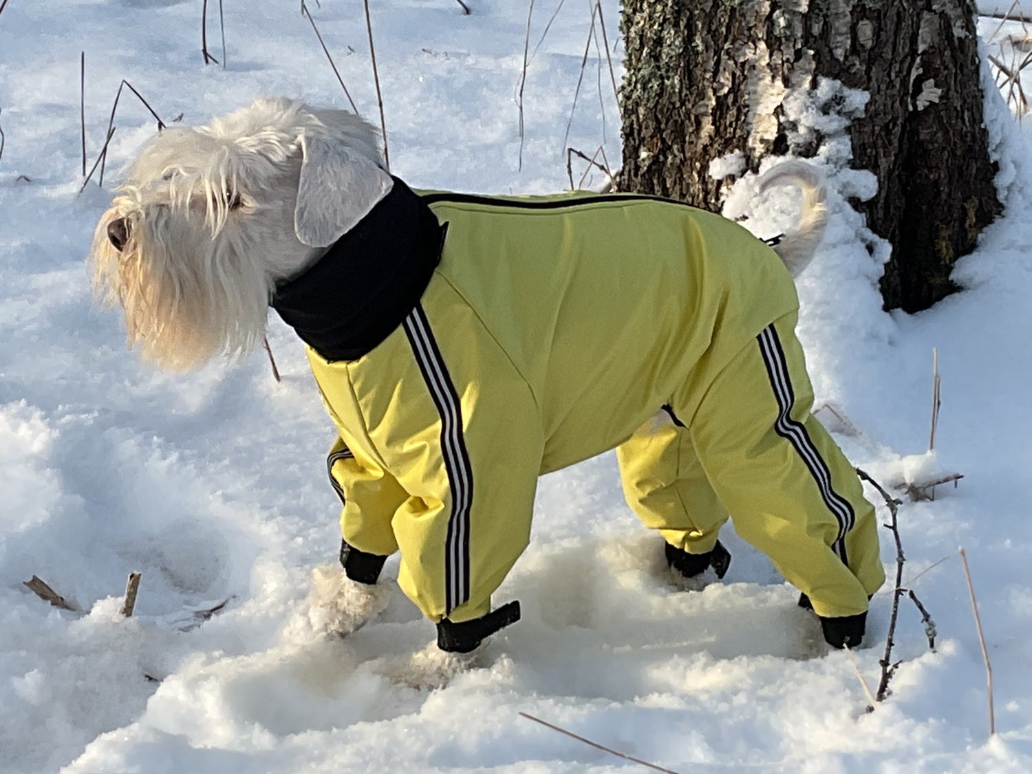 Tämä on haalari, jota voi käyttää "kesät-talvet". Kevyt, hengittävä ja tuulenpitävä ja kosteutta hylkivä, joskaan ei täysin vedenpitävä. Haalarin käyttö helpottaa huomattavasti arjessa, jos sinulla on koira , jolla on runsaat jalkakarvat. Lahkeet estävät roskien ja hiekan kerääntymisen ja talvella lumen paakkuuntumisen jalkakarvoihin. Haalarin puhtaan pitoon riittää usein pelkästään suihkutus ja se kuivuu nopeasti.